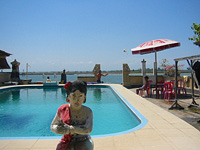 ホテルからシャトルが出ていて、連れて行ってもらったのが、やはり前回お世話になったBMR (Benoa Marine Recreation)。大型バスがいくつか着く駐車場もでき、カフェテラスも随分と立派になっていました。 何をしましょうかねと、担当の GUSTIさん と一緒に写真を眺める。“ダイビングは?” というので、私達はライセンス持ってるけど、子どもと別々に行動するのはちょっと・・・と答えると、“体験ダイビングなら、子どもも大丈夫よ。インストラクター2人で、子どもにマンツーマンでついてあげるから” え〜!! まだ11歳と9歳だけど・・・ でも、やってみようと決まり! |