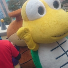 鹿児島マラソンのスタートは、ドルフィンポート。ここ、水族館に入らなくても、街なかの用水路?!みたいなとこで、いるかちゃんと遊べるのです。