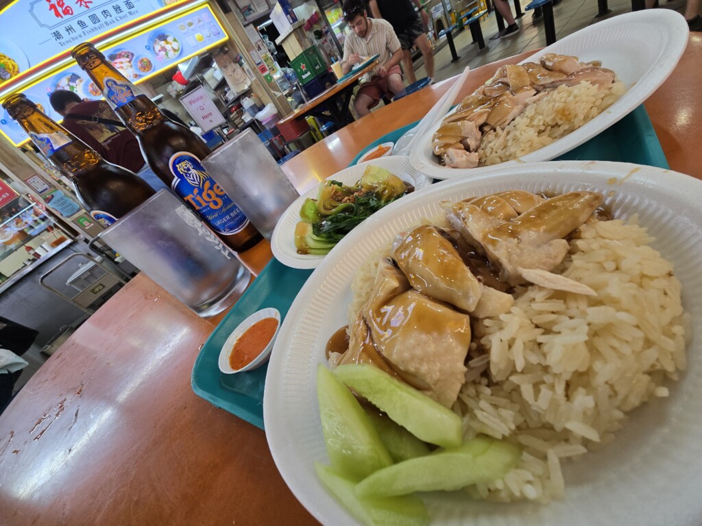 チキンライスと。回転はやいので並んでいても15分。Beerは別のお店で買ってきます