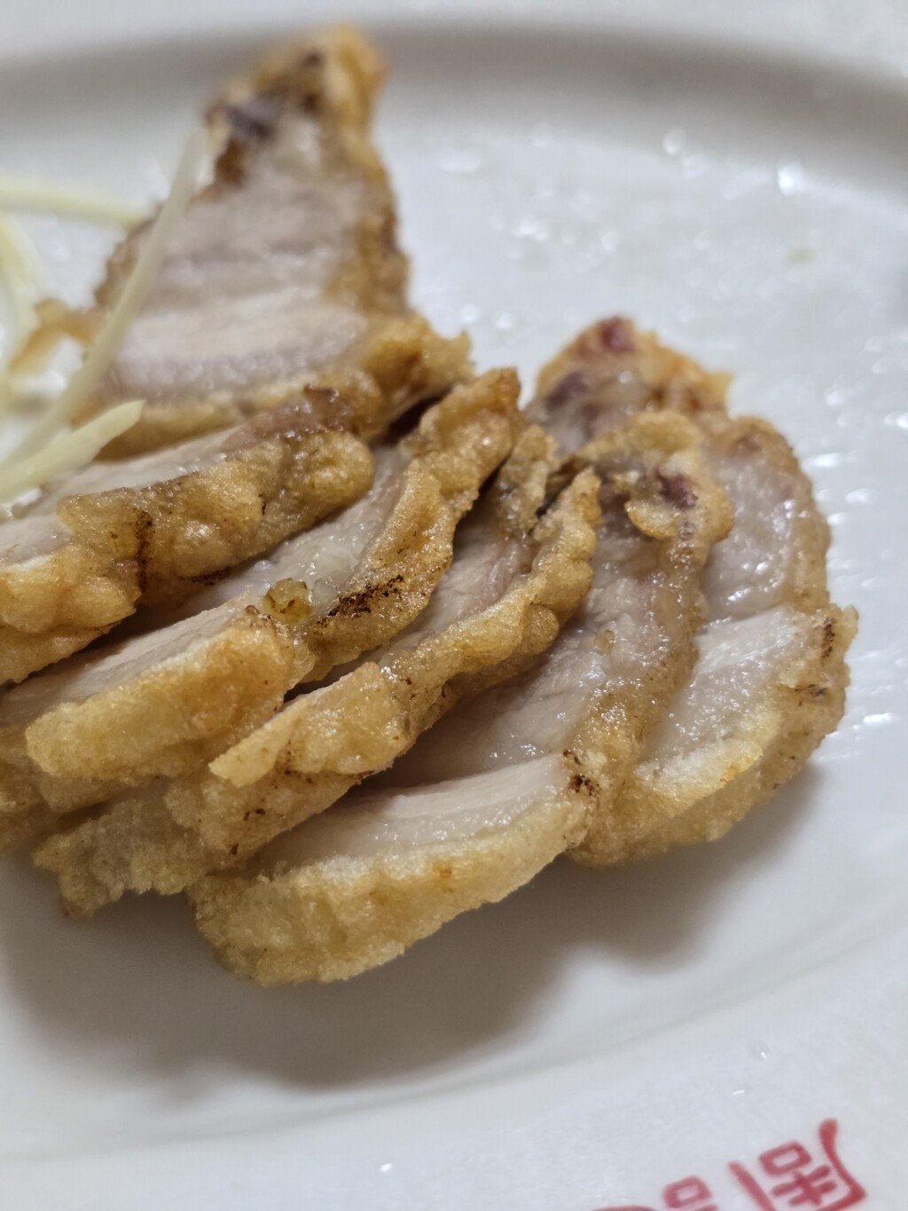 チャーシュー肉を唐揚げ。さくさくジューシー 一口食べて 美味しい!声出た。 おかゆとともに