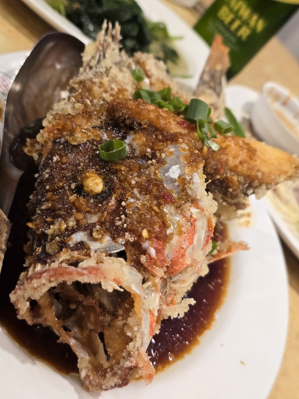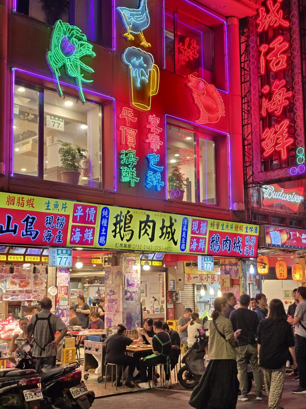 遼寧街夜市。行こうと思ったお店が閉まってたので、人が集まってたこちらへ。名物ガチョウ肉 思ったよりあぶらっぽくなくてOK。入口で選んだお魚を唐揚げにしてもらって。ビールが空になると、野球場売り子のようなバドガールがおすすめしてくれるので飲み過ぎる(^^)
