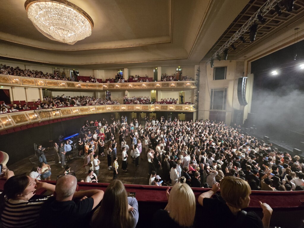 - Day2(月曜):ロンドン(白人系)、男性がDay1より多かった印象。私たちのすぐ前方下の座席は招待者のようで、舞台だけでなく観客の様子も記録したりしていました(Day1はこのエリアも一般に開放されていました)