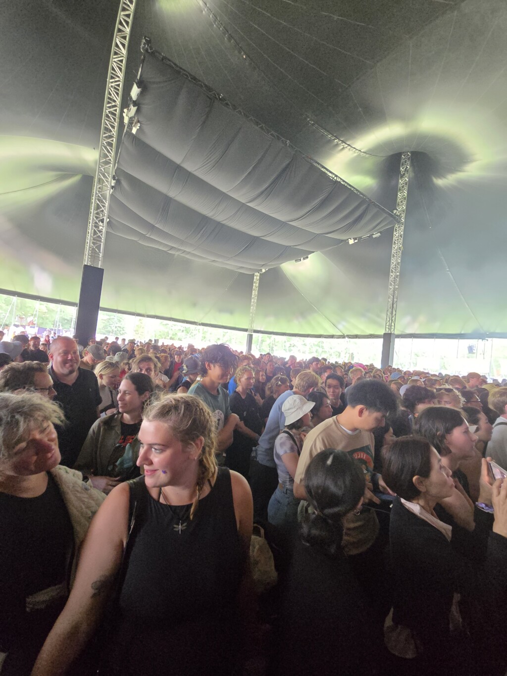 音楽好きが自由に集う北欧最大級のフェス。広大な敷地内でキャンプしながら、またボランティアしながら音楽を楽しみにきていた若者も多くて活気にあふれていました。KAZëさんが出演した日は他に、ラッパー Doechii、ヘッドライナー Olivia Rodrigo も。途中 大雨でみんなでテント避難したり、ぎゅうぎゅう詰めで飲んで踊って歌って、朝から23:30まで めいっぱい音と雰囲気を楽しみました。日没は22:00頃