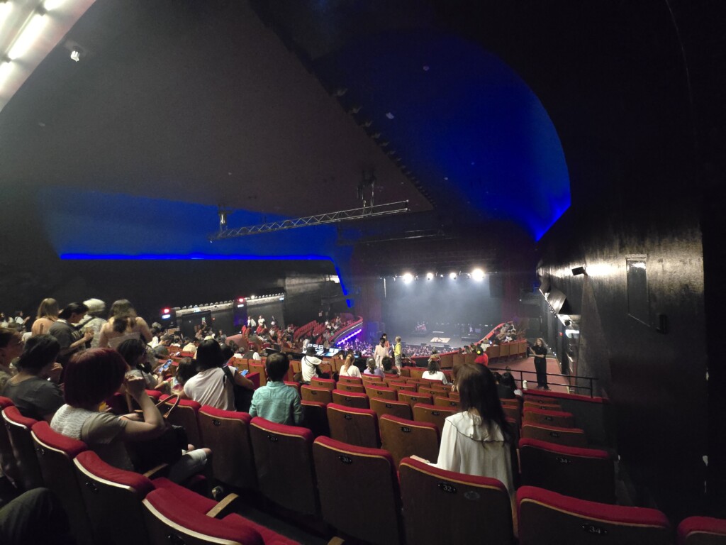 - 今回ヨーロッパでここだけ ステージ前方が着席指定席。後ろの方にもよく見えるようにとの意識がはたらくので、みな着席して体揺らして聞いていました(KAZëさんのもフィニアス・オコネルのも)→ フィニアスは始まってすぐ総立ちというスタイルじゃなかったので戸惑っていた模様